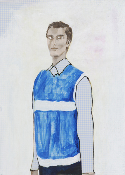 Pull bleu, 2005 Acrylique, vernis, crayon à papier, fusain sur toile, 70 x 50 cm